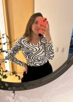 Este bodysuit de manga larga y cuello redondo esta confeccionado en doble lycra de alta calidad, ofrece un ajuste impecable que realza la figura y garantiza máxima comodidad. Su diseño abstracto en blanco y negro aporta un toque moderno y sofisticado, ideal para destacar en cualquier ocasión. Versátil y elegante, este bodysuit es perfecto para combinar con faldas, pantalones o jeans.
