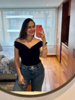 Body con un diseño cruzado en el frente y escote tipo off-shoulder, que realza la silueta con sutileza y estilo. Su confección en velvet perfecto para combinar con jeans o faldas de tiro alto, aporta un toque fresco y elegante al armario.