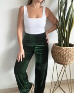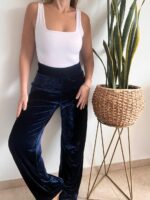 Pantalón confeccionado en terciopelo de alta calidad, con pretina alta que asegura un ajuste firme y favorecedor. Su diseño suelto proporciona comodidad sin perder estilo, mientras que el corte recto resalta su caída elegante. Este pantalón es una pieza funcional y versátil, ideal para quienes buscan un equilibrio entre comodidad y sofisticación.