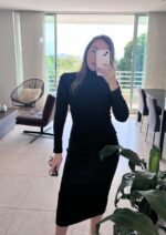 Nuestro Vestido Emilia es un  diseño versatil y con mucho estilo, tiene cuello tortuga y manga larga. Es confeccionado en tela rip: un textil suave, elástico y con superficie acanalada que brinda la mayor comodidad.